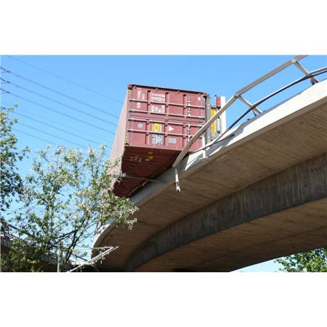 "You are here" Home » Crashes » 18 wheeler almost fall off the bridge